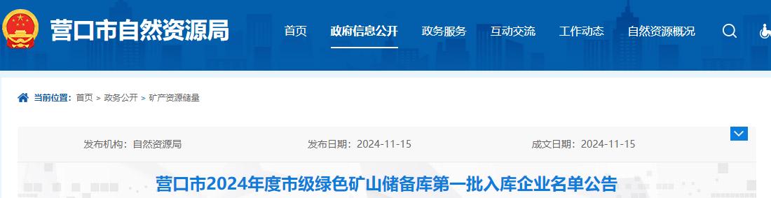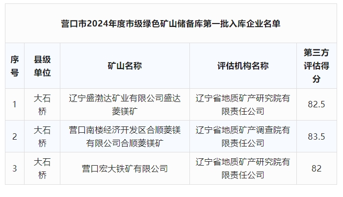 附件:营口市2024年度市级绿色矿山储备库第一批入库企业名单