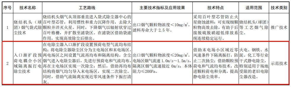 其中,包括三项水泥行业先进技术,分别是:入口渐扩段预荷电耦合小区域隔离振打电除尘技术:适用于火电、钢铁、水泥、化工等行业干式静电除尘,特别适用于场地受限的老旧电除尘器改造;