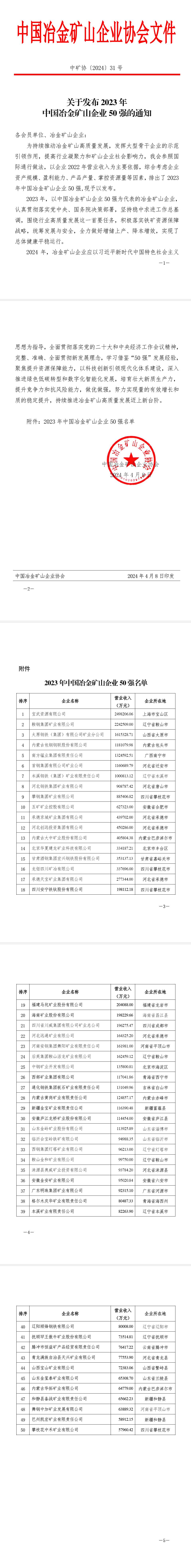 中国冶金矿山企业50强出炉!