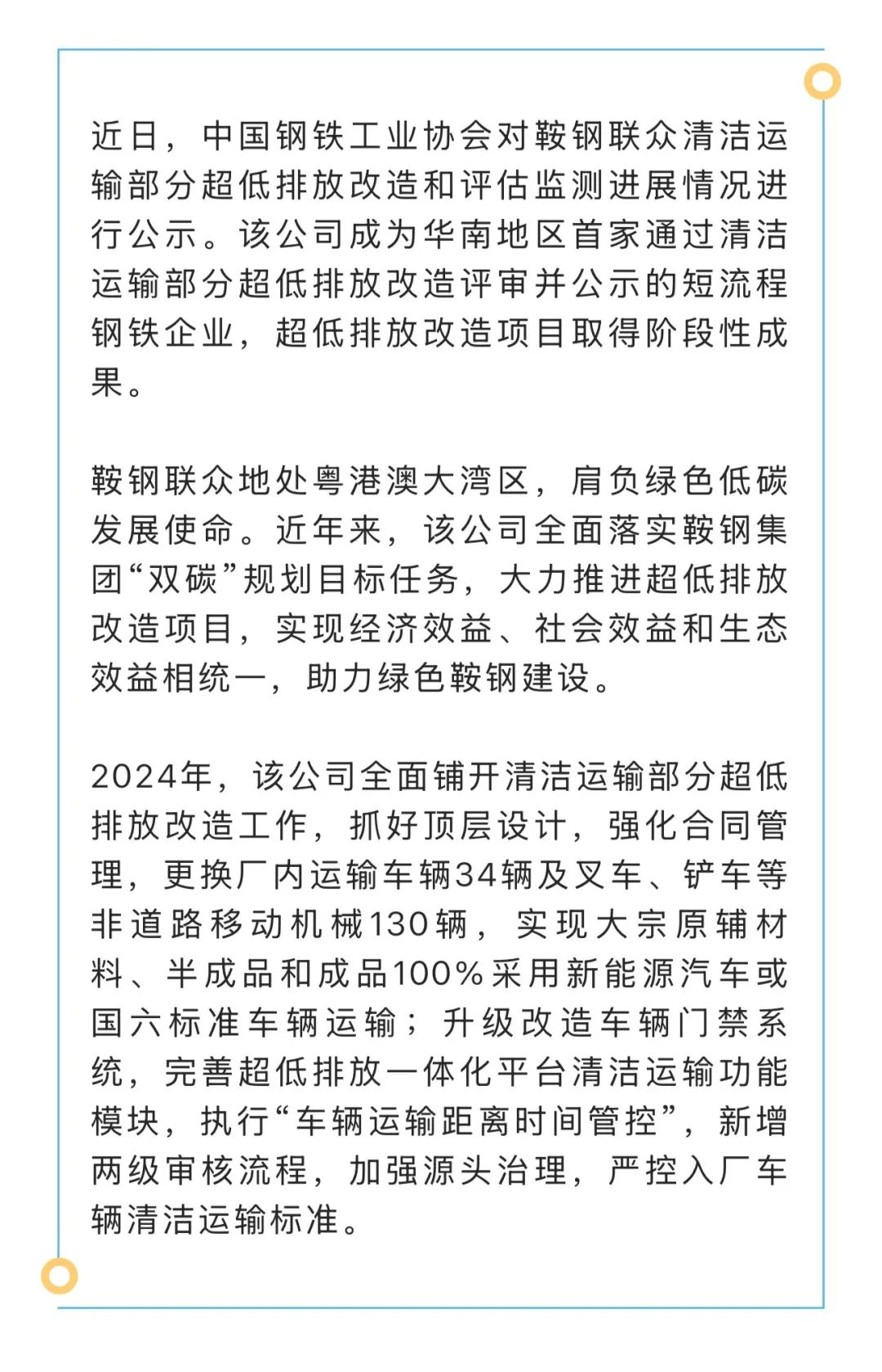 鞍钢联众清洁运输部分超低排放改造通过国家评审