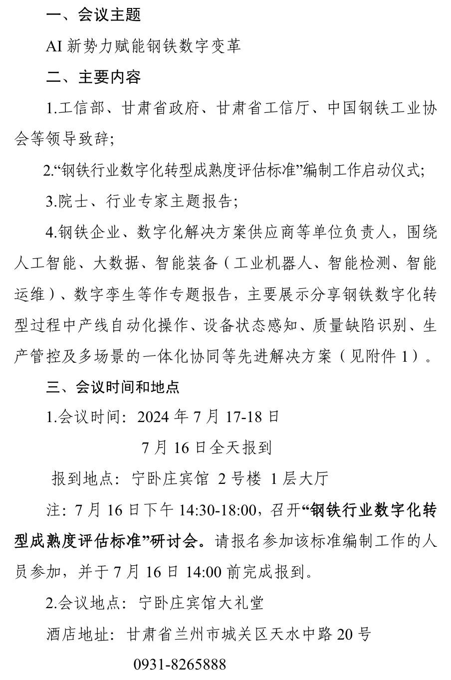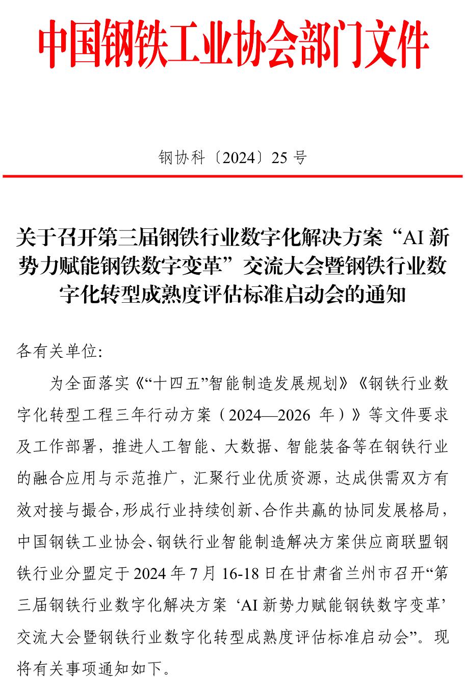 关于召开钢铁行业数字化转型成熟度评估标准启动会的通知
