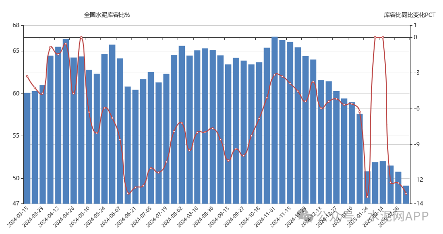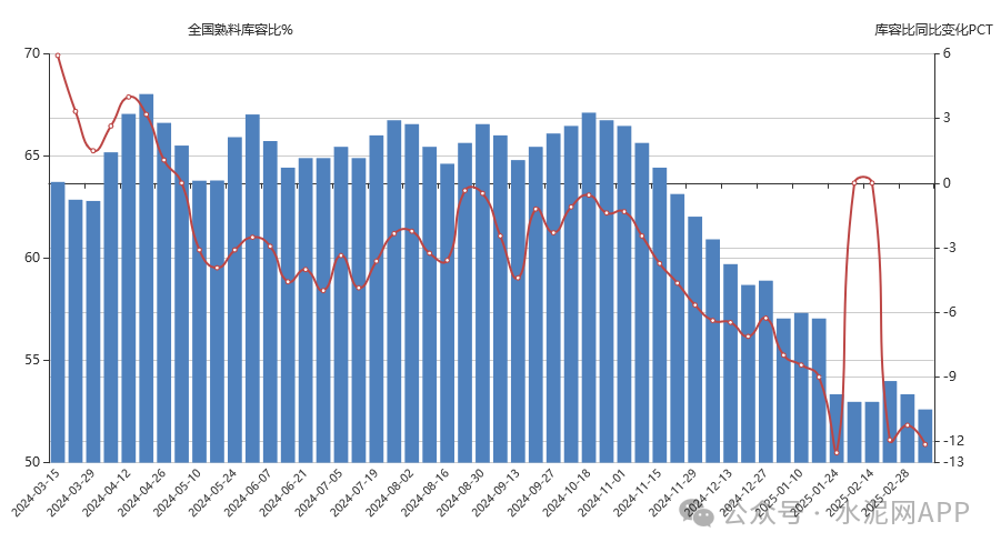 熟料方面,截至3月7日,全国熟料库容比为52.61%,连续下降2周,较去年同期下降12%。