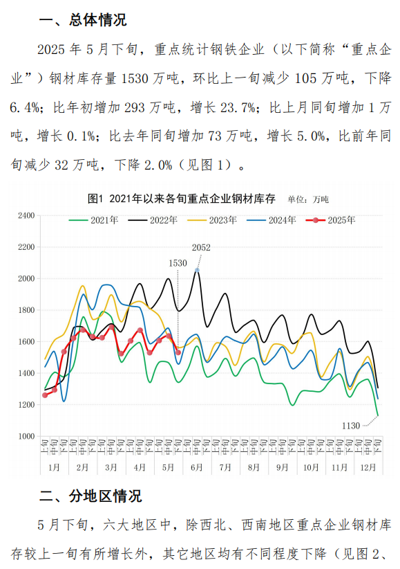 5月下旬重点统计企业钢材库存旬报