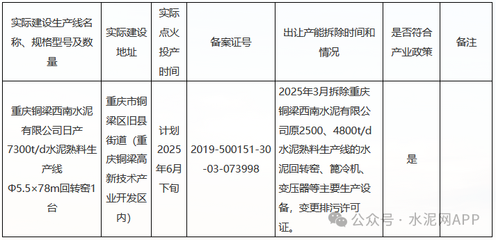 近日,重庆市经信委发布“关于重庆铜梁西南水泥有限公司迁建项目完成情况的公示”。