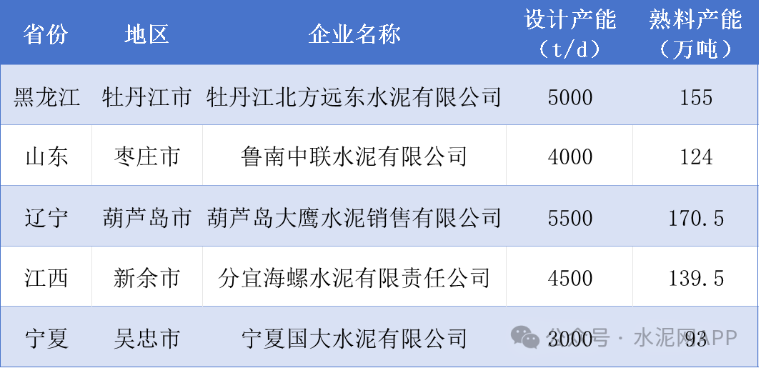 据中国水泥网水泥大数据研究院统计,今年预计还有5条熟料生产线点火投产,合计产能682万吨(按照310天计算)。