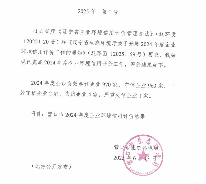营口市2024年度企业环境信用评价结果通告,含众多耐火企业