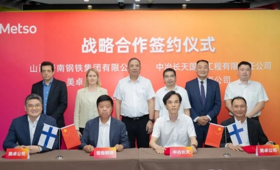 近日,晋南钢铁集团总裁张天福与美卓大中华区财务行政与业务发展副总裁文扬之代表双方在湖南长沙美卓中国研发中心签署战略合作协议。中冶长天国际工程有限责任公司董事长乐文毅,中冶长天国际工程有限责任公司副总经理喻明军;美卓全球矿山业务总裁Piia Karhu,美卓全球矿山业务副总裁Rogerio Rodrigues,美卓大中华区总裁梁晓峰;集团董事长郑家平见证签约。