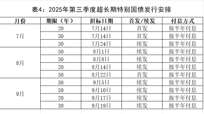 现公布2025年第三季度关键期限国债、短期国债、储蓄国债、超长期特别国债发行有关安排(见附件)。执行中如有变动,以届时国债发行文件为准。