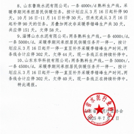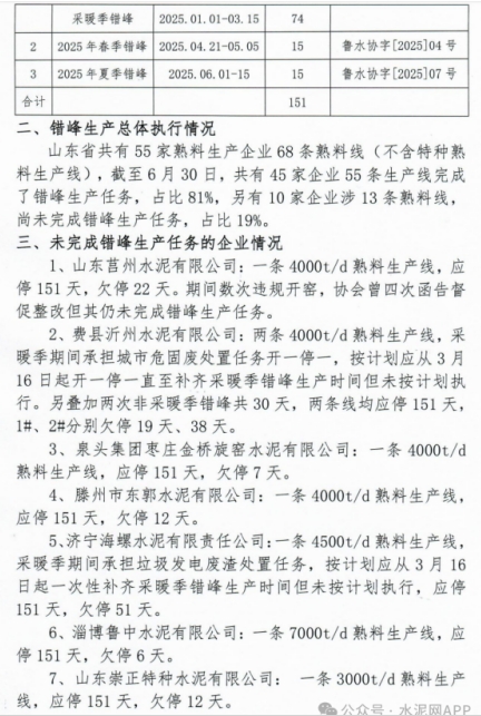 近日,山东省水泥行业协会发布“关于水泥熟料企业错峰生产执行情况通报”称,山东省共有55家熟料生产企业68条熟料线(不含特种熟料生产线),截至6月30日,共有45家企业55条生产线完成了错峰生产任务,占比81%,另有10家企业涉13条熟料线,尚未完成错峰生产任务,占比19%。全文如下: