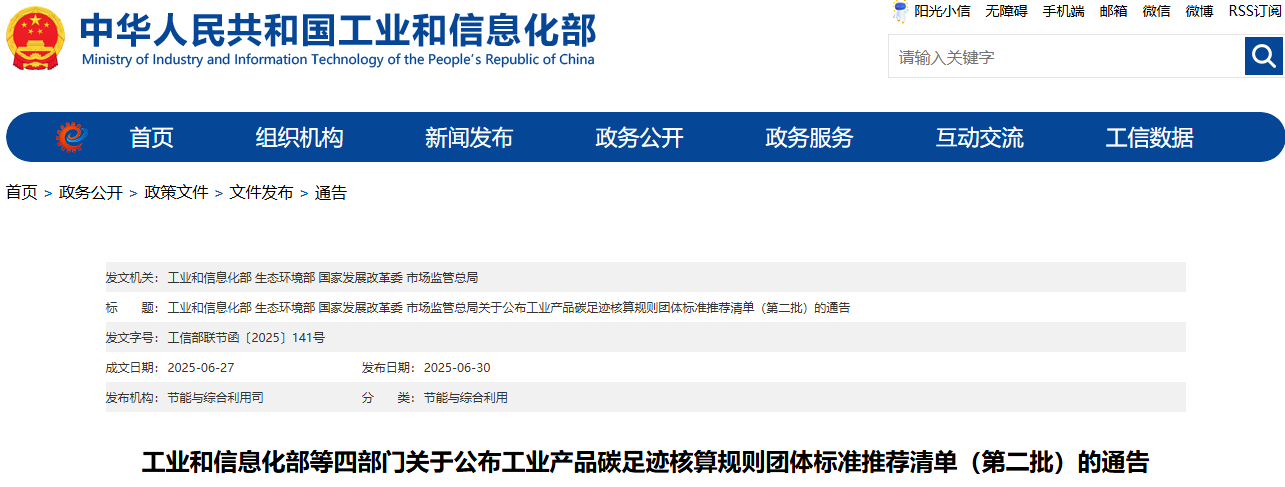 为加快提升工业产品碳足迹管理水平,建立健全碳足迹管理体系,促进工业绿色低碳转型,经相关标准化机构推荐、专家评审、网上公示等程序,工业和信息化部、生态环境部、国家发展改革委、市场监管总局确定了23项工业产品碳足迹核算规则团体标准推荐清单(第二批),现予以公布。