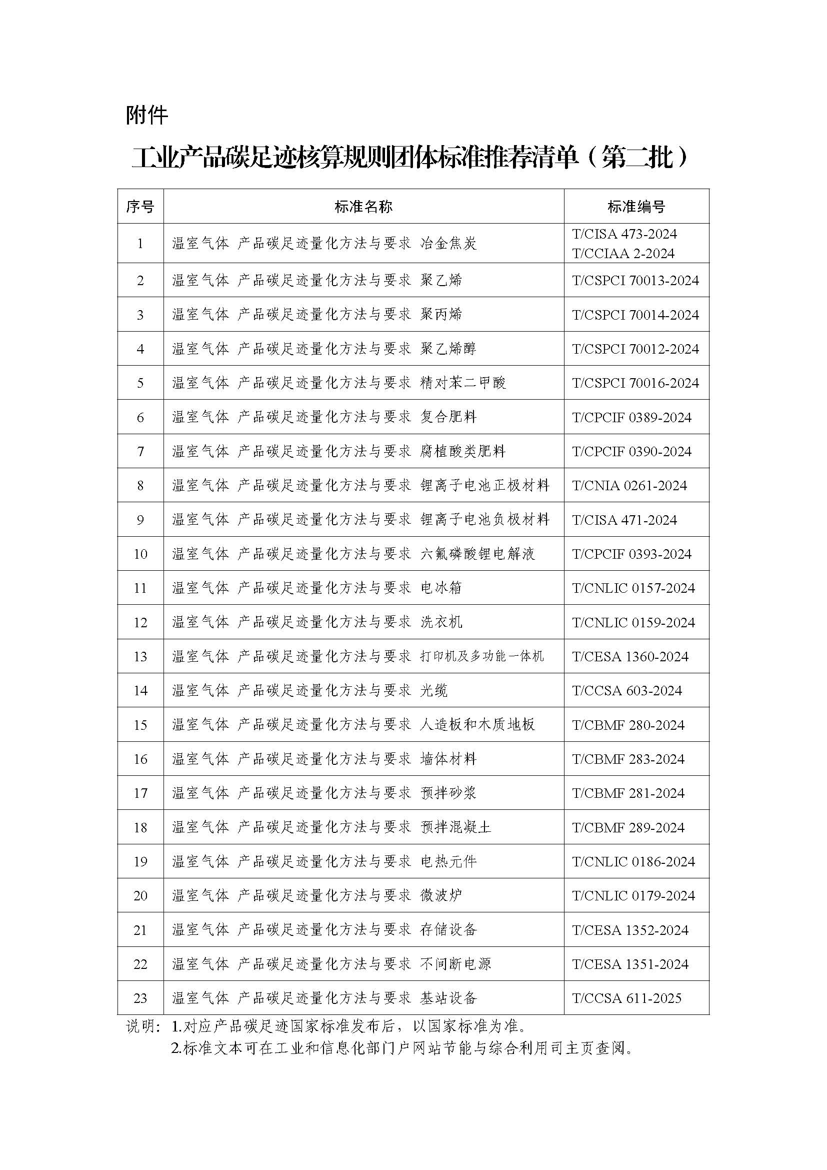 附件:工业产品碳足迹核算规则团体标准推荐清单(第二批)