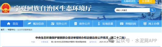 数据显示,截至6月29日,中央第五生态环境保护督察组向宁夏回族自治区转办的第二十二批39件信访件,其中,宁夏胜金水泥有限公司违法超规占地案例引发关注。