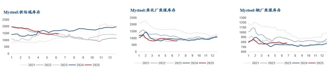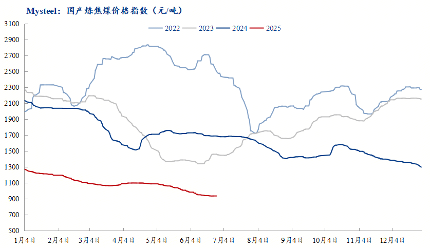回顾2025年上半年的炼焦煤市场,过剩的压力和悲观的预期依旧压制炼焦煤持续下跌。虽然从下游铁水数据来看,刚需较去年同比有所回升。但供应过剩、市场信心缺失依旧导致炼焦煤价格延续去年单边下行的行情走势,各煤种价格已降至8年内新低。虽然在三月底四月初煤价出现昙花一现般短暂上涨,但总体跌势不改,基本面矛盾持续加剧,市场悲观情绪蔓延,投机市场活跃度持续降低,上游库存持续高压。展望下半年市场,煤炭供应在低价格压制之下将有收缩预期,但煤矿全年生产任务仍需完成,国内煤炭大幅减产难度较大,进口煤需求下滑,通关量有小幅减量的可能。而需求侧钢厂由于盈利状况尚可,短期高炉减产力度不大,但随着成材消费下滑以及出口压力加大,下半年铁水产量环比下滑仍是大概率事件。因此下半年炼焦煤市场基本面仍将维持宽松格局,但由于煤价下行已逼近煤矿生产成本,高成本炼焦煤资源已被挤出,炼焦煤价格底部显现,煤矿让利空间有限,预计行情降幅将小于上半年,煤价加速下跌的时期已经过去,后续价格博弈将更为激烈,不排除阶段性供需错配引发行情短期波动。