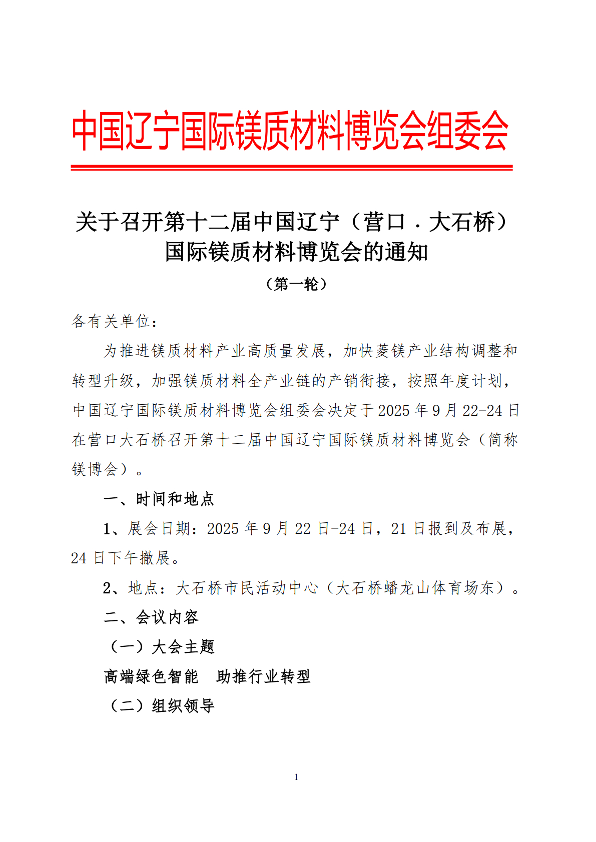 关于召开第十二届中国辽宁(营口.大石桥)国际镁质材料博览会的通知