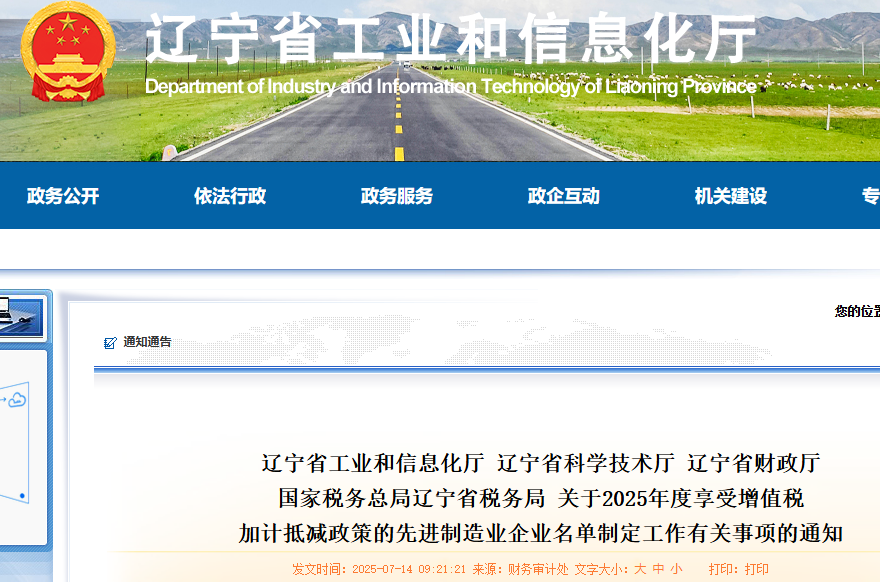 根据《财政部 税务总局关于先进制造业企业增值税加计抵减政策的公告》(财政部 税务总局公告2023年第43号)、《工业和信息化部办公厅 财政部办公厅 国家税务总局办公厅关于2025年度享受增值税加计抵减政策的先进制造业企业名单制定工作有关事项的通知》(工信厅联财函〔2025〕217号)有关规定,为做好2025年度享受增值税加计抵减政策的先进制造业企业名单制定工作,现将有关事项通知如下:
