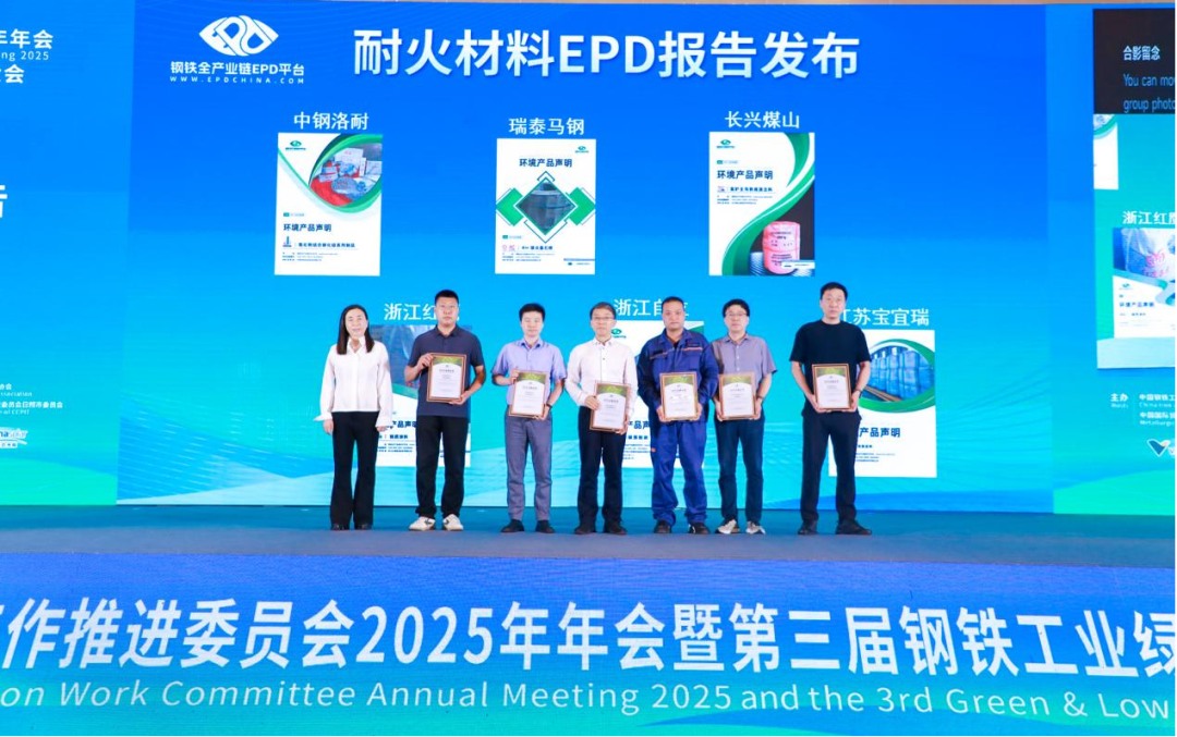 近日,中钢洛耐氮化物结合碳化硅系列制品的环境产品声明(EPD)在中国钢铁行业全产业链EPD平台上成功发布,平台技术委员会主席、首席师刘颖昊为企业颁发证书。这一里程碑式的成果,标志着中钢洛耐氮化物结合碳化硅系列制品正式完成全生命周期的环境绩效评价,在环境透明度与可持续发展方面取得了新突破。