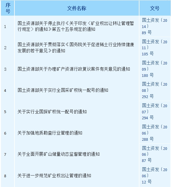 日前,《自然资源部第六批废止的规范性文件目录》公布,废止16件涉及矿产资源管理的相关规范性文件(详见下表)。