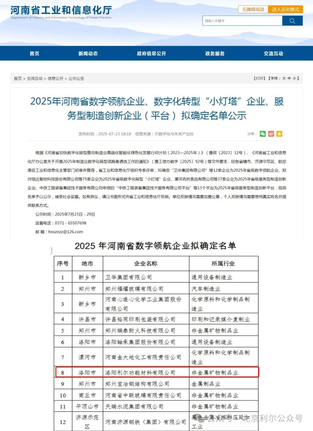 7月23日,河南省工业和信息化厅公示了“2025年河南省数字领航企业”拟确定名单,洛阳利尔功能材料有限公司成功入选。作为国内高温工业用耐火材料领域的领军企业,公司通过数字化技术深度融合生产制造全流程,成为河南省新材料产业数字化转型的典范。这也是公司在数字化转型领域获得的又一项省级荣誉。