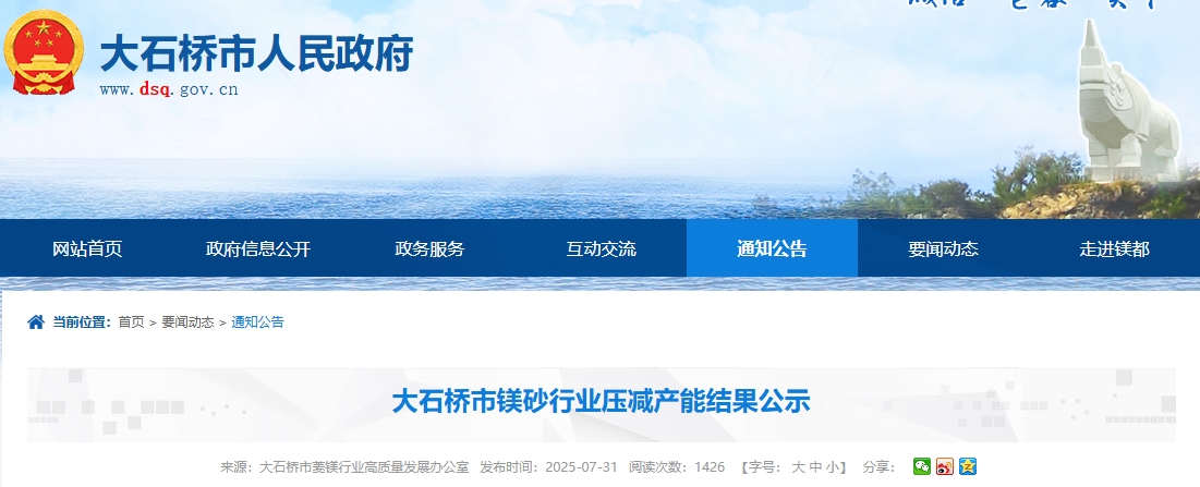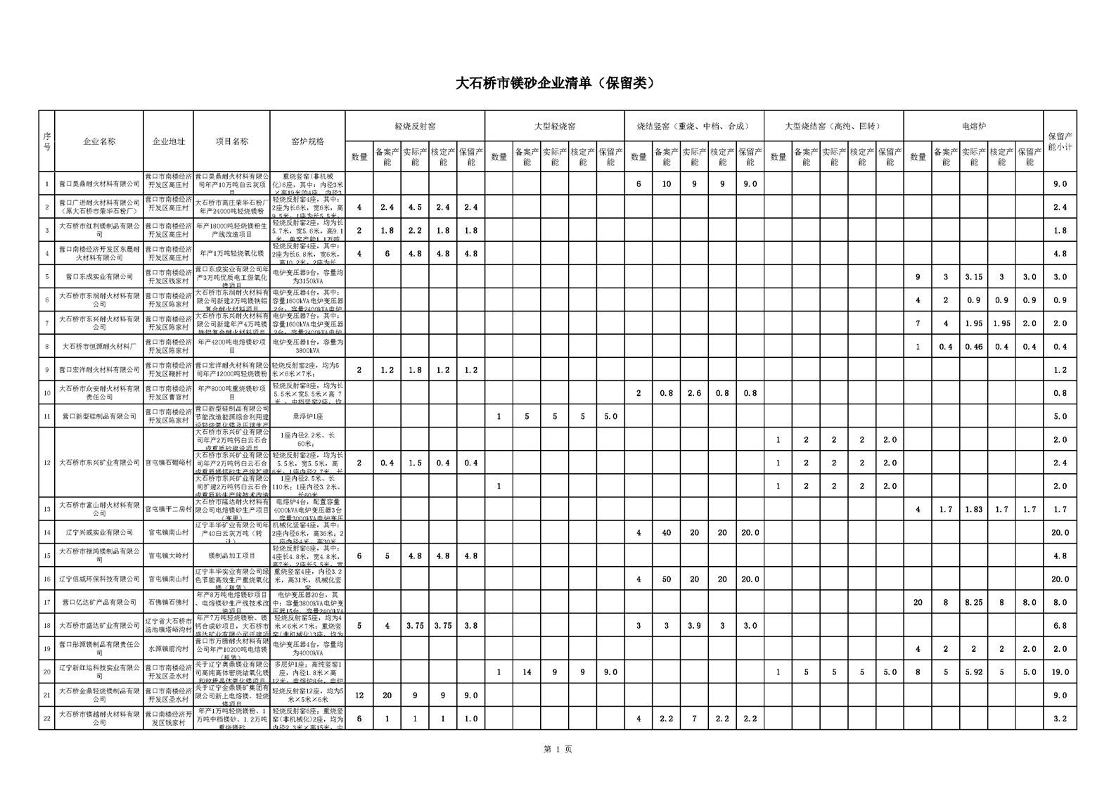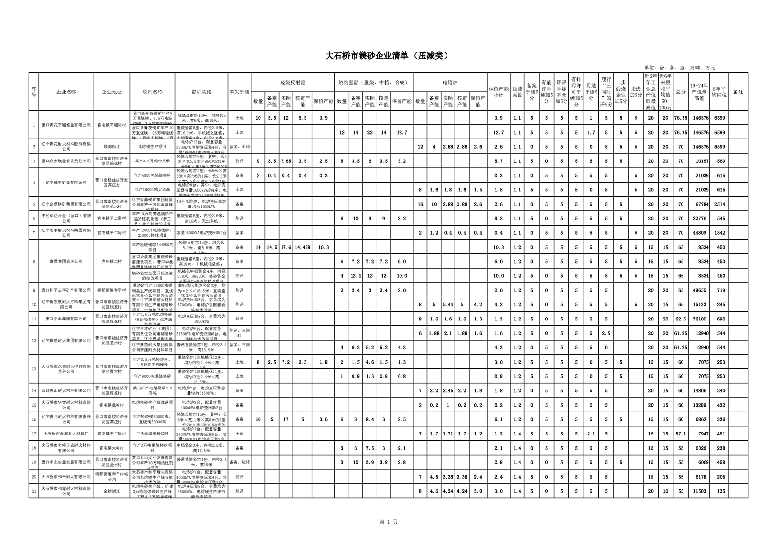 大石桥市公示镁砂行业压减产能结果,保留类企业79家、压减类企业148家!