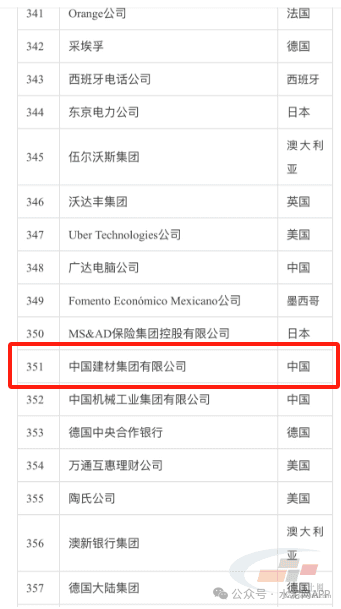 另外,来自法国的圣戈班集团、爱尔兰的CRH公司分列榜单第302位和第457位。