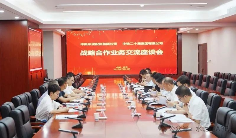 7月23日,中铁二十局党委常委、副总经理张文峰,副总经理陈耀华在西安总部,会见到访的华新水泥股份党委常委、副总裁杜平一行,双方进行了座谈交流并签订战略合作框架协议。