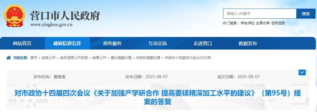 贵委提出的《关于加强产学研合作 提高菱镁精深加工水平的建议》已收悉,现答复如下: