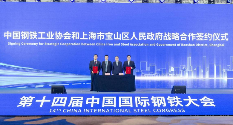 8月7日,第十四届中国国际钢铁大会期间,隆重举行了中国钢铁工业协会和上海市宝山区人民政府战略合作签约仪式、低碳排放钢产品(C2F Steel)发布仪式以及低碳排放钢评价启动仪式。中国钢铁工业协会副会长兼秘书长姜维,副秘书长冯超;上海市宝山区人民政府区委副书记、区长邓小冬,区委常委、副区长肖刚出席。