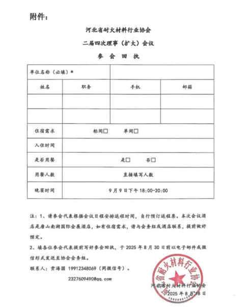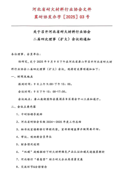 关于召开河北省耐火材料行业协会二届四次理事(扩大)会议的通知