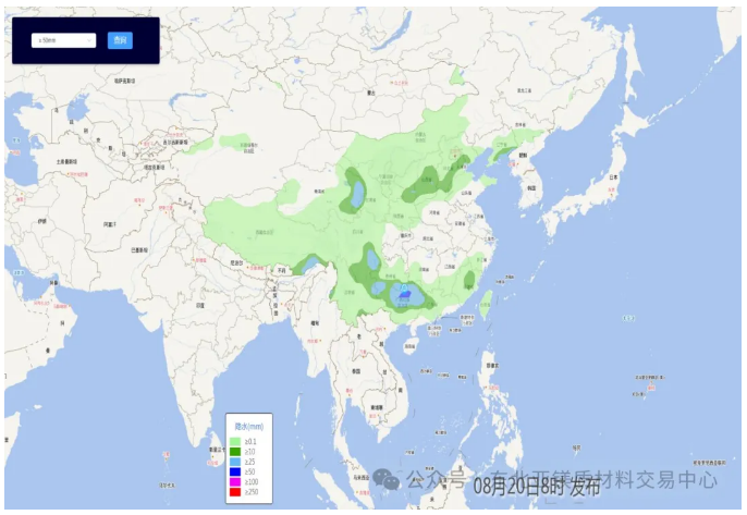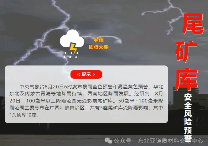 8月20日100毫米以上降雨范围无受影响尾矿库。