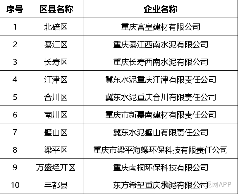 在《重庆市2025年土壤污染重点监管单位名录》里,包含10家水泥企业,具体见下表: