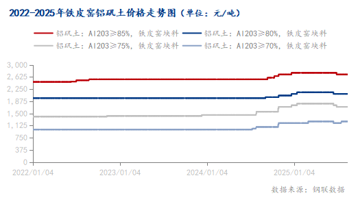 图1 2022-2025年铁皮窑铝矾土价格走势图