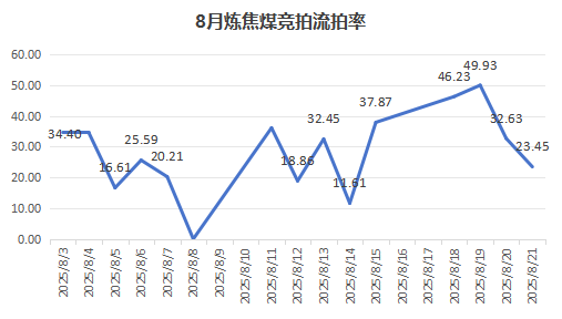 八月中旬起,炼焦煤市场开始出现明显转弱态势。线上竞拍波动明显,参与竞拍的炼焦煤矿挂牌场次众多,总计挂牌量数量可观,但市场情绪低迷,流拍率较前期大幅增加。