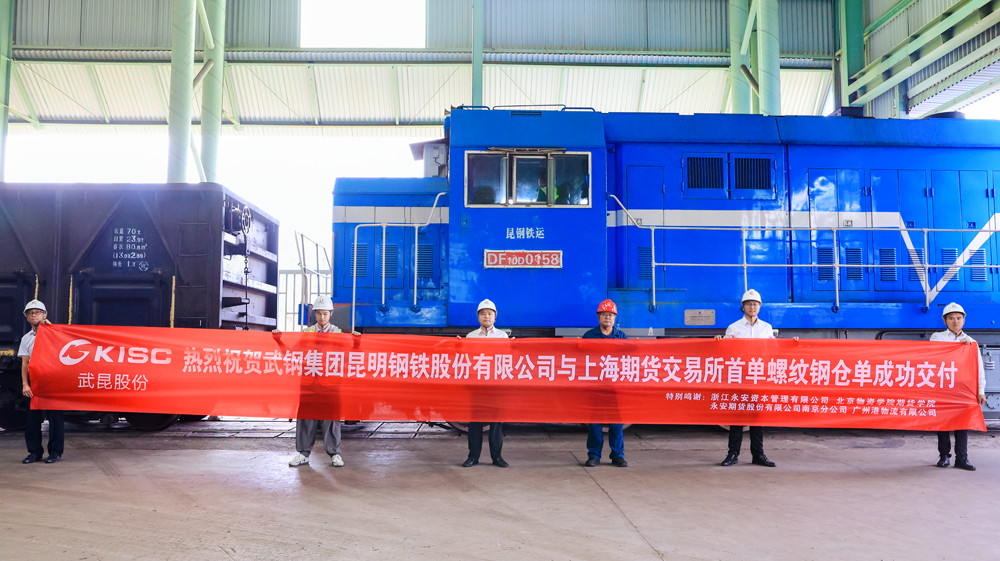 8月4日,在武昆股份营销中心和物流部的共同见证下,一列满载螺纹钢的专列从武昆股份安宁基地高棒成品库缓缓驶出,顺利完成与上海期货交易所的首单螺纹钢仓单交付。